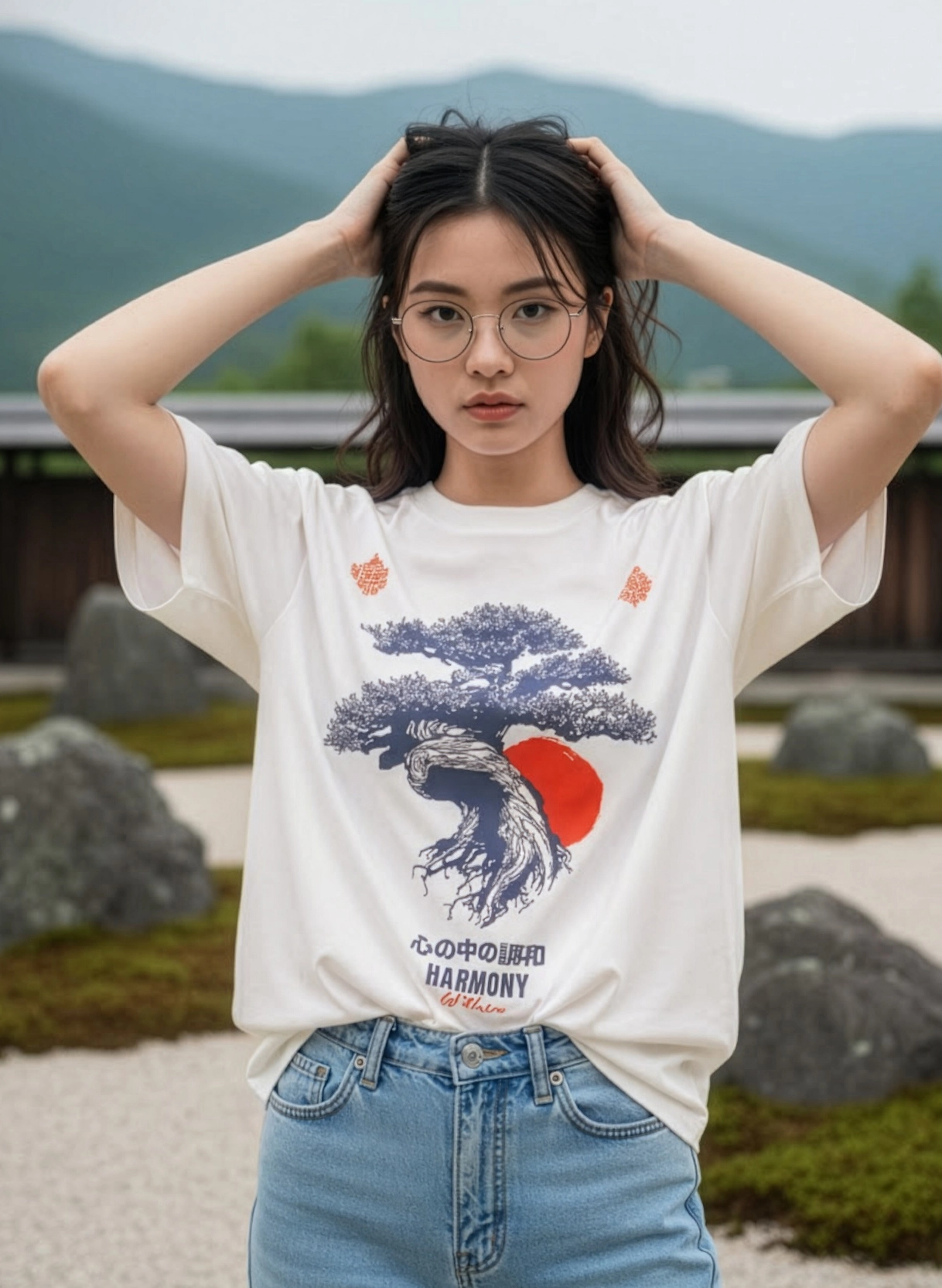 Find calm in simplicity with Oriko’s “Harmony” Oversized Graphic Tee — featuring a serene Japanese tree illustrated in a soft, traditional ink-inspired style. Peaceful, aesthetic, and deeply expressive.