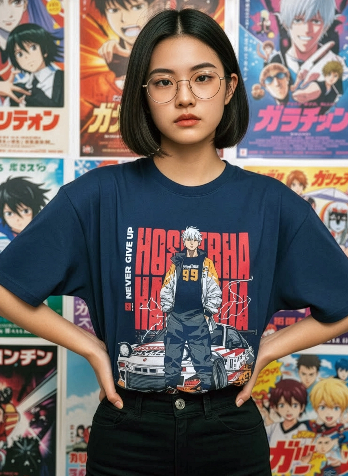 Start your engines with Oriko’s “Kārēsu” Oversized Graphic Tee — featuring a fictional anime racer alongside a high-speed drift car. A perfect fusion of motorsport adrenaline and anime art.