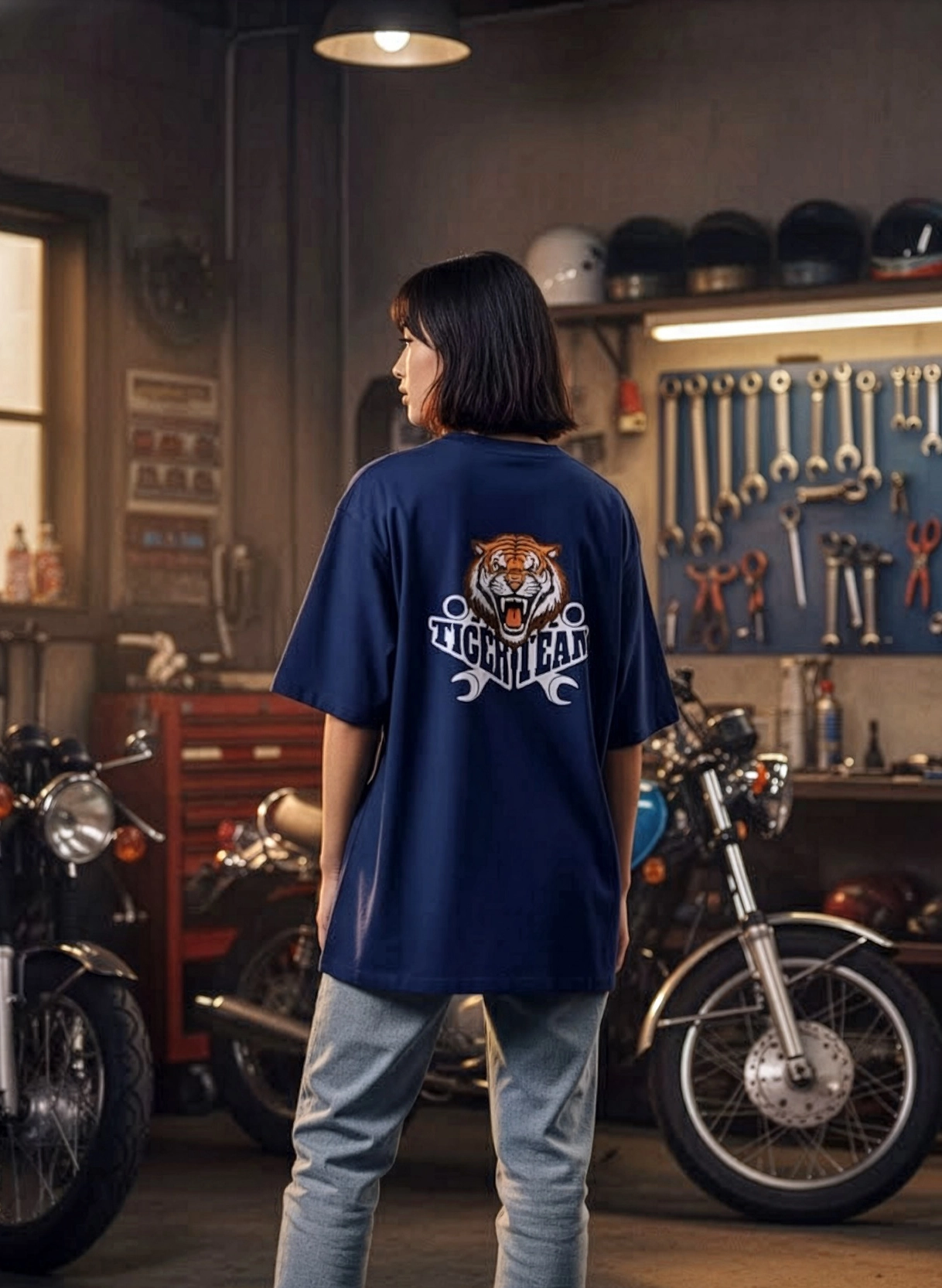 Oriko “Tora” Oversized Graphic T-Shirt – Tiger Team Mechanical Sports Crew Tee