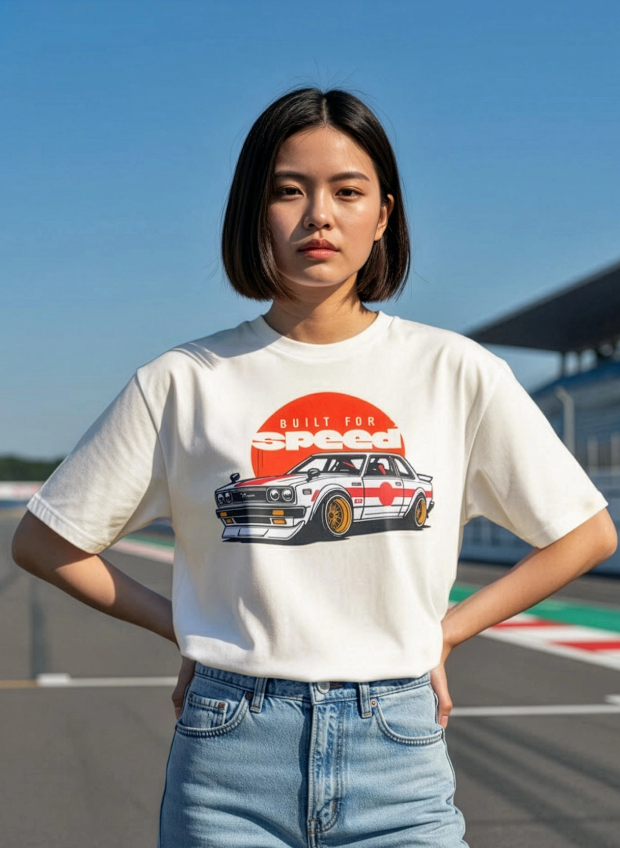 Oriko “Vintage Wheels” Oversized Graphic T-Shirt – Classic Sedan Racing Tee
